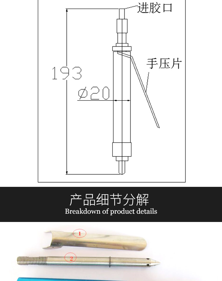 手动点胶阀配合普通的压力桶即可投入使用,只需要按下控制压杆就出胶,松开即断胶,操作简单,经济实用,以压缩空气为动力手动控制出胶量大小,手动点胶阀可接各式针头出胶嘴,可按要求连接内孔¢8~11mm胶管,可与任意压力桶连接使用,只需接上气源即可使用,外形精致轻巧,方便手握,使用灵活,清洗方便.